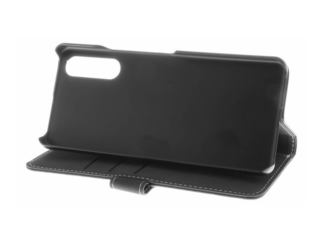 Insmat Exclusive - Vikbart fodral för mobiltelefon - genuint läder, kartong+papper, polykarbonat (PC), PU-beläggning - svart - för Sony XPERIA 10 VI 650-3253