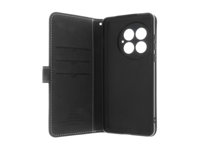 Insmat - Vikbart fodral för mobiltelefon - genuint läder, kartong+papper+aluminiumfolie, termoplastisk polyuretan (TPU), bomullssömmar - svart - för OnePlus 13