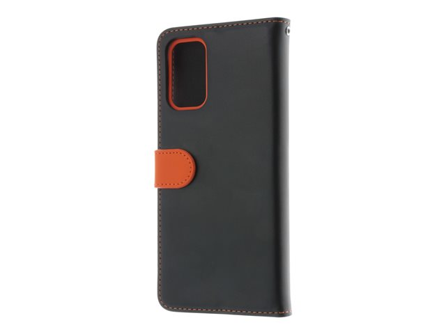 Insmat - Vikbart fodral för mobiltelefon - läder, kartong+papper+aluminiumfolie - svart, orange - för Samsung Galaxy A32 5G 650-2970