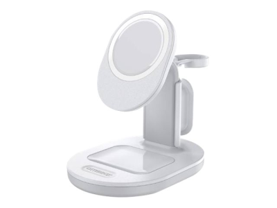 OtterBox - Trådlöst laddställ - 3-i-1 - lucid dreamer, vit, silver - för Apple iPhone 12, 12 mini, 12 Pro, 12 Pro Max, 13, 13 mini, 13 Pro, 13 Pro Max 78-80598