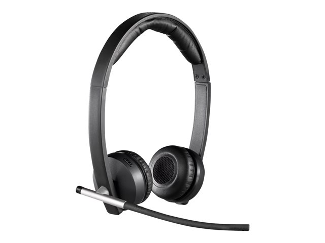 TRÅDLÖST HEADSET SOM ÄR BÅDE BEKVÄMT OCH PRAKTISKT Under långa konferenssamtal kan det göra stor skillnad att resa dig upp. När du använder Logitechs trådlösa headset H820e får du friheten att göra anteckningar på en whiteboard, gå in i ett tyst kontor eller ställa dig upp och stretcha. H820e är designat för att vara så väl bekvämt som praktiskt och inkluderar en vadderad bygel och mjuka, utbytbara öronkuddar med brusreducerande teknik.