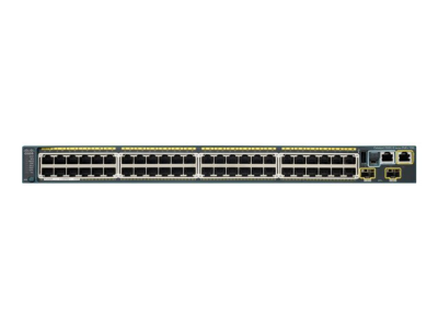 | Gränssnitt | 48 x 10Base-T/100Base-TX/1000Base-T - RJ-45 1 x USB Type A 1 x konsol - mini-USB typ B hantering 1 x konsol - RJ-45 hantering 1 x 10Base-T/100Base-TX - RJ-45 hantering 2 x SFP+ |