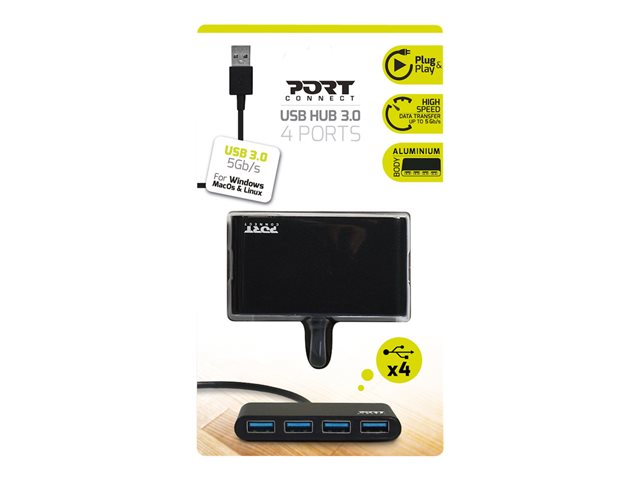 The PORT Connect SuperSpeed USB hub is designed for seamless connectivity with Mac devices. With a compact length of 30 cm, it provides flexibility for desktop arrangements while offering four SuperSpeed USB 3.0 ports that enable high-speed data transfer rates of up to 5 Gbps. Whether for data backup, file sharing, or device connectivity, this hub meets various connectivity needs. Its compliance with USB 1.1, USB 2.0, and USB 3.0 standards ensures broad compatibility and reliable operation across different technology generations, making it an essential accessory for Mac users.